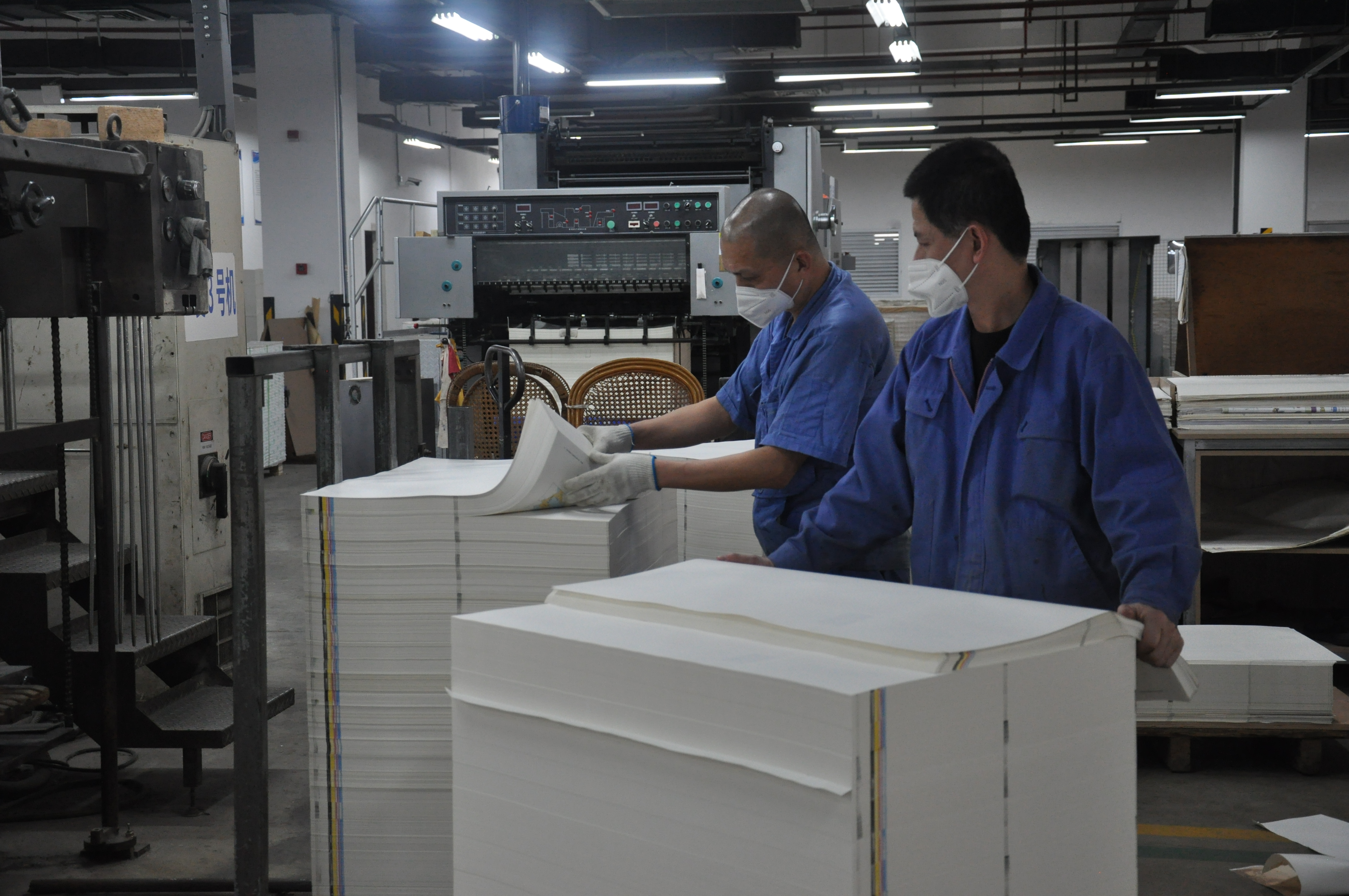 印務(wu)集團在付(fu)印時間遲(chi)、印制周期(qi)短、人員用(yong)工緊、疫情(qing)防控進入(ru)新階段的(de)情況下,第(di)一時間動(dong)員部署教(jiao)材印制工(gong)作,生産街(jie)接、質量控(kong)制、人員保(bao)障、物資供(gong)應、後勤服(fu)務等各部(bu)門協同發(fa)力,确保集(ji)團規模化(hua)協同生産(chan)優勢的高(gao)效發揮。集(ji)團春節期(qi)間倡議全(quan)體員工“以(yi)愛爲家、奉(feng)獻在崗”, 設(she)備24小時不(bu)停歇高速(su)運轉,工人(ren)們“兩班倒(dao)”不停工,開(kai)足馬力、滿(man)負荷運行(hang),晝夜兼程(cheng),争分奪秒(miao),深挖潛、奪(duo)高産、抓質(zhi)量、搶周期(qi),以實際行(hang)動踐行國(guo)有企業的(de)責任擔當(dang)。