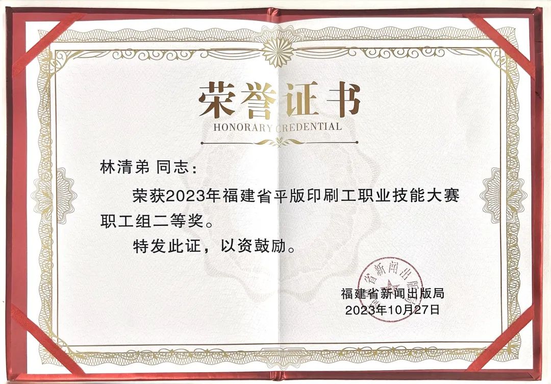·• · 近日(ri),“第八屆(jie)全國印(yin)刷行業(ye)職業技(ji)能大賽(sai)”、“2023年全省(sheng)🧛🏾♀️平版印(yin)刷工職(zhi)業技能(neng)大賽”以(yi)及“2023年度(du)福建省(sheng)包裝印(yin)刷産品(pin)質量對(dui)比交流(liu)活動金(jin)銀銅”獎(jiang)項的頒(ban)獎典禮(li)在廈門(men)舉行。由(you)印務集(ji)團承印(yin)的《琴硯(yan)收藏》《福(fu)建畫報(bao)2023第四期(qi)第3帖》《學(xue)畫寶典(dian)-淩霄花(hua)》分别榮(rong)獲福建(jian)省包裝(zhuang)印刷産(chan)品金獎(jiang)、銀獎、銅(tong)獎。印務(wu)集團印(yin)後💁🏼♀️加工(gong)中心陳(chen)其槐、李(li)波榮獲(huo)第八屆(jie)中國印(yin)刷行業(ye)職業技(ji)能㊙️大賽(sai)第二名(ming),印務集(ji)團精👩🏼❤️👨🏾品(pin)印刷中(zhong)心林清(qing)弟榮獲(huo)2023年全省(sheng)平版印(yin)刷工職(zhi)業技能(neng)大賽二(er)等獎。